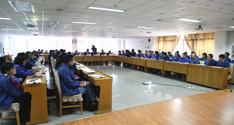首先,耿華龍代表市場營銷系統、李鵬代表技術質量系統、裴慶東代表生產系統、邢志波代表企業管理系統、王琳琳代表財務系統,分別匯報、分析了各系統三季度的運行情況。從市場營銷系統來看,三季度整個市場仍然沒有出現明顯的增長態勢,市場格局沒有發生變化,公司根據年初的工作部署及相關客戶、產品策略,穩步推進各項工作。公司前三季度生產經營規模指標平穩增長,效率效益提升明顯,“轉型升級”效果顯著。