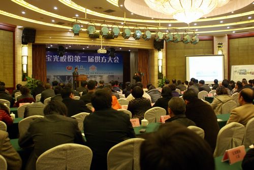 我公司第二屆供方大會于12月17日在寶雞高新區君悅酒店隆重召開。來自全國各地的76家供應商的100余位代表,寶光集團董事長佟紹成,股份公司副總經理張軍及采購部、質量管理部、技術部、生產運營部等相關部門的領導和有關工作人員參加會議。