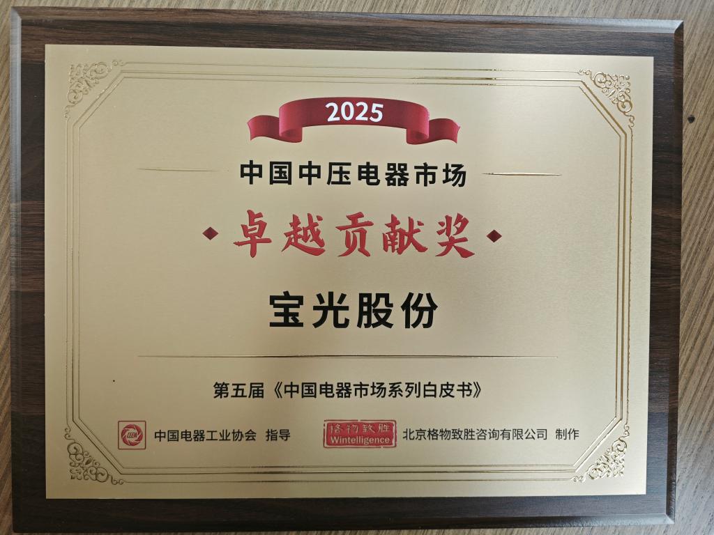 榮譽時刻||寶光股份榮獲2025年度中國中壓電器市場“卓越貢獻獎”和“銷量領先獎”