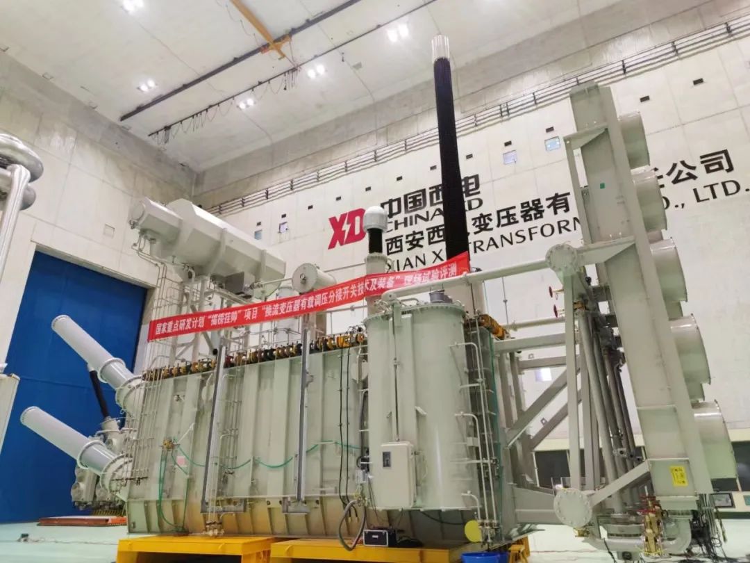 西電西變自主研制的隴東—山東±800千伏特高壓直流工程慶陽(yáng)站首臺(tái)采用國(guó)產(chǎn)有載調(diào)壓分接開(kāi)關(guān)的特高壓換流變一次性通過(guò)全部試驗(yàn)