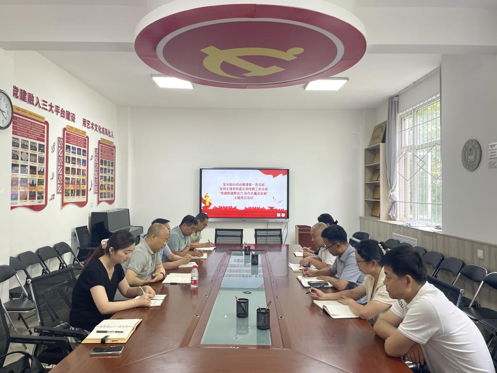 為深入開展學(xué)習(xí)貫徹習(xí)近平新時(shí)代中國特色社會(huì)主義思想主題教育,熱烈慶祝中國共產(chǎn)黨成立103周年,7月2日,綜合管理第一黨支部與寶雞文理學(xué)院音樂學(xué)院教工黨支部開展以“黨建聯(lián)建聚合力,合作共贏促發(fā)展”黨建聯(lián)建活動(dòng),共慶黨的生日。