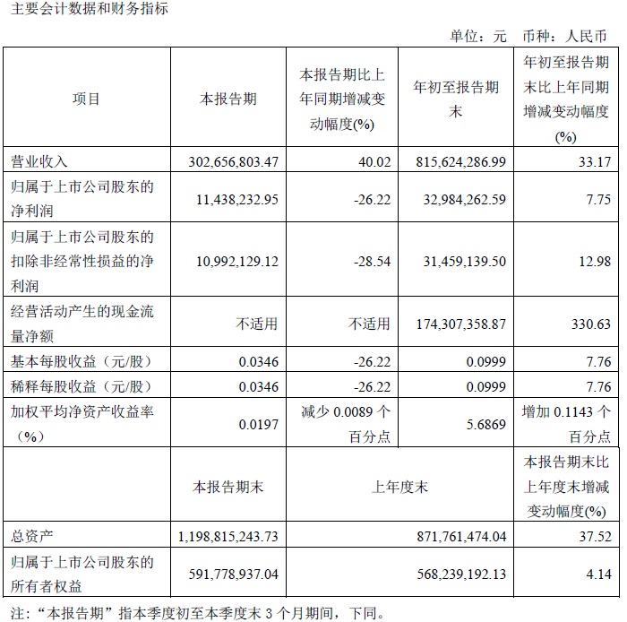 寶光股份2021年三季度主要財務(wù)指標